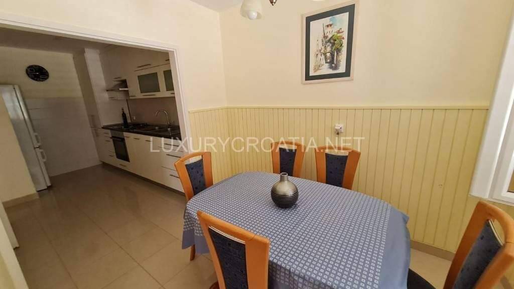 Das Haus ist nur 70 Meter vom Meer entfernt! Der nächste Strand ist nur etwa 200 Meter vom Haus entfernt, während die Altstadt von Korcula etwa 400 Meter zu Fuß entfernt ist. Mit dem Auto dauert es etwa 5 Minuten, um einen großen, neu gebauten Supermarkt zu erreichen, neben dem sich auch eine Tankstelle und eine Autowaschanlage befinden. Das Haus bietet einen wunderschönen Blick auf die Naturschönheiten des Korcula-Kanals und der Halbinsel Peljesac, aber auch auf die kulturellen Schönheiten der ummauerten Altstadt von Korcula. Das Haus verfügt über eine Zwei-Zimmer-Wohnung und eine Ein-Zimmer-Wohnung, also insgesamt 3 Schlafzimmer und 2 Badezimmer in diesem Doppelhaus mit Garage und kleinem Garten auf der Rückseite. Um das Haus herum gibt es zwei Terrassen, von denen eine überdacht ist und eine Fläche von 20 m² hat, während die andere 30 m² groß ist. Das Haus hat auch einen kleinen Garten, der perfekt für diejenigen ist, die gerne ihr eigenes Gemüse anbauen. Das Haus ist mit 4 Klimaanlagen klimatisiert und hat 3 große Vorratskammern. Das Haus ist voll möbliert, aber die Möbel sind nicht im Preis inbegriffen.