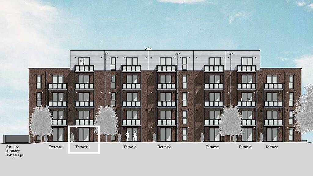 - 33 Wohnungen in Westausrichtung mit Terrasse oder Balkon, 6 Wohnungen sind barrierefrei - 1- bis 3-Zimmer mit ca. 48 m² bis 75 m² Wohnfläche für einen 1-3 Personen Haushalt - Marken-Einbauküche mit E-Geräten und Umlufthaube, Platz für eine Geschirrspülmaschine und Kühlschrank- Gefrierkombination - Bad mit bodengleich gefliester Dusche - 1 Abstellraum oder -fläche in jeder Wohnung - Wechselsprechanlage, barrierefreier Aufzug von der TG bis ins Staffelgeschoss - zentrale Wärmeversorgung mit Fußbodenheizung - separate Zähler für jede Wohnung - 1 Kellerraum pro Wohnung, im Keller ist Platz für Fahrräder und Kinderwagen/Rollstuhl - Glasfaser und Unterflurmüllsystem - Spielflächen und Fahrradständer vor dem Hauseingang