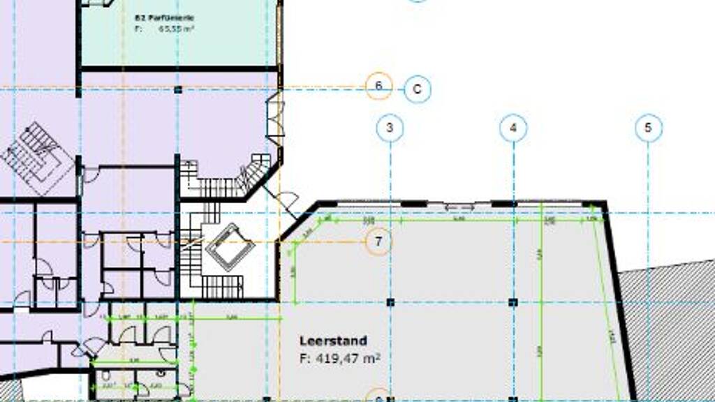 Die hier angebotene Einzelhandels- bzw. Gastronomie-Einheit umfasst eine Fläche von ca. 419 m² und befindet sich im Erdgeschoss, direkt am Haupteingang der Galerie.
