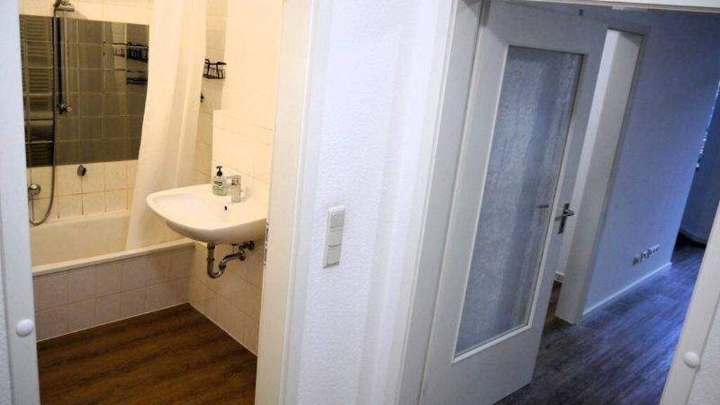 Beim Betreten der Wohnung befindet man sich in einer geräumigen Diele, von welcher alle weiteren Zimmer erreichbar sind: das ca. 5 m² große Bad, der ca. 2 m² große Abstellraum mit eingebauten Regalen, die ca. 5 m² große Küche mit Einbaugeräten, das ca. 46 m² große Wohnzimmer und der ca. 2 m² große Balkon. Die Wohnung ist mit Laminat verlegt und das Bad und die Küche sind mit Fliesen an den Wänden ausgestattet. Zur Wohnung gehört ebenfalls ein Kellerraum.Heizung: Die Beheizung des Hauses erfolgt über eine Gasbrennwerttherme. Irrtum und Zwischenvermietung vorbehalten. Alle Angaben beruhen auf Auskünften des Vermieters bzw. Eigentümers. Keine Gewähr.