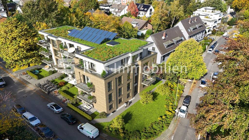 Der Frechener Weg in Köln-Weiden liegt in einem gehobenen, ruhigen Wohngebiet mit vielen Ein- und kleinen Mehrfamilienhäusern, die von gepflegten Gärten mit altem Baumbestand umgeben sind. Gleichzeitig zentral und doch im Grünen erreichen Sie nach wenigen Gehminuten die Felder mit schönen Spazierwegen - ideal für alle, die gerne joggen, die mit Kindern Auslauf benötigen oder mit Hunden Gassi gehen. Dort, im Frechener Weg 12, entsteht ein viergeschossiges Mehrfamilienhaus. Es umfasst 18 zwischen ca. 52,20 m² und ca. 120,88 m² große Wohnungen mit zwei, drei oder vier Zimmern. Zwei Treppenhäuser führen in die hochwertig ausgestatteten Apartments. Das moderne Gebäude mit der freundlichen Fassade aus hellem Putz und Klinker ist ebenerdig zugänglich. Ein Aufzug verbindet die Stockwerke - vom Keller bis zum Staffelgeschoss unter dem Flachdach. Eine der Penthousewohnungen fährt der Fahrstuhl direkt an. Der Zugang ist nur mit einem speziellen Schlüssel möglich. Eine Sicherheitstür schützt zusätzlich. Im Keller befinden sich die Tiefgaragenstellplätze, die sich optional mit einer Vorrichtung für E-Ladesäulen ausstatten lassen. Zusätzlich gibt es einen Fahrradraum und Kellerabteile für die Wohnungen sowie eine Waschküche.