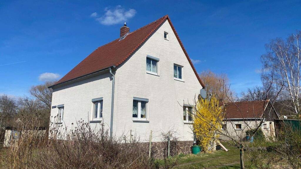 Zum Verkauf steht ein massiv errichtetes, sanierungswürdiges Einfamilienhaus mit Nebengebäude auf einem ca. 930m² großen Grundstück in angenehmer Wohnlage von Weinböhla. Das Haus wurde ca. 1938 erbaut und verfügt über eine Wohnfläche von etwa 120m², verteilt auf 5 Wohnräume, Flur, Küche und ein funktionelles Bad. Die Immobilie ist voll unterkellert und befindet sich in 1,5-geschossiger Bauweise mit nicht ausgebautem Dachspitz.
