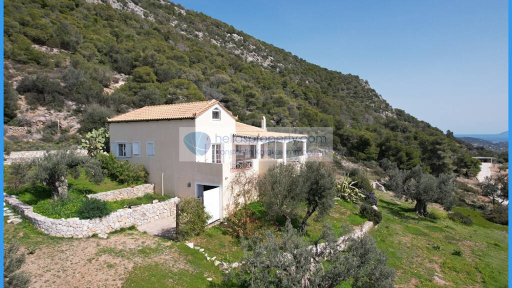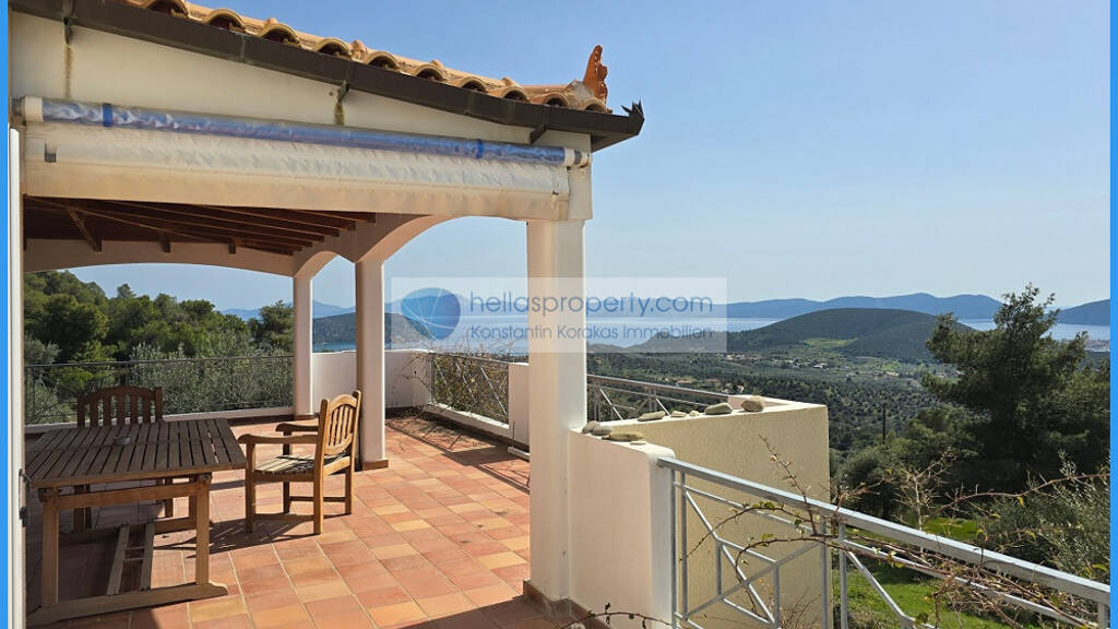Mit Blick auf Ermioni und das Myrtoische Meer steht in wunderschöner Hanglage ein freistehendes mit traditionellen Zügen zweistöckiges Einfamilienhaus auf einem 3.819 Quadratmeter großen Grundstück zum Verkauf.