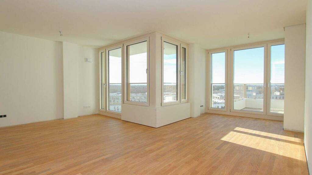 Auf ca. 82,65 m² präsentiert sich diese großzügige 2-Zimmer-Wohnung im 9. Obergeschoss des Meiller's Eleven. Der offene Wohn-Essbereich mit bemerkenswerter Fläche (ca. 51,46 m²), bildet das kommunikative Zentrum und bietet Raum für geselliges Beisammensein. Das Schlafzimmer punktet mit einer ruhigen Lage und Platz für individuelle Einrichtungsideen. Ein elegantes Badezimmer mit bodengleicher Dusche sorgt für barrierefreien Komfort, zusätzlich steht ein separates WC zur Verfügung. Eine Kammer bietet Stauraum für Putzutensilien oder Vorräte. Zwei Balkone erweitern den Wohnbereich ins Freie. Die hochwertige Einbauküche fügt sich nahtlos in den Wohnraum ein, und die Hydrokultur-Begrünung mit automatisch bewässerten Pflanztrögen an der Fassade schafft ein grünes, gesundes Raumklima. Zur Wohnung gehören ein privates Kellerabteil und ein fest zugeordneter Tiefgaragenstellplatz.