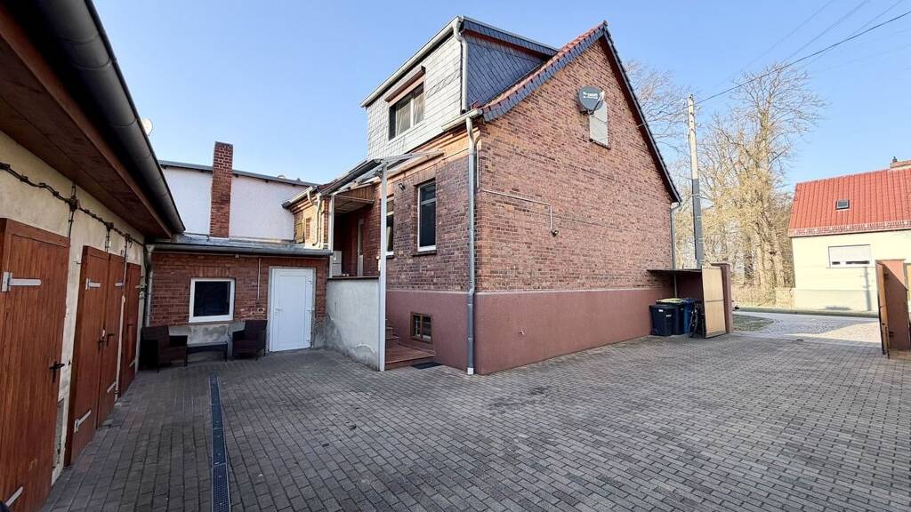 Auf dem 1.200 m² großen Grundstück befindet sich neben dem Wohnhaus ein großes Nebengelass mit Werkstatt, Waschhaus und ausreichend Stauraum. Das Grundstück ist vollständig umzäunt und von der Rückseite mit dem Auto befahrbar. Durch das Hoftor, welches mit dem Nachbarn geteilt wird, erreicht man den gepflasterten Hof mit Stellfläche für die Autos. Ein Teil des Nebengelasses zur Garage umzufunktionieren, sollte kein Problem darstellen. Im geräumigen Keller befinden sich unter anderem die Anschlüsse für die Waschmaschine, Trockner und co. Der Keller ist trocken, mit einem Heizkörper bestückt und bietet weiteren Stauraum.