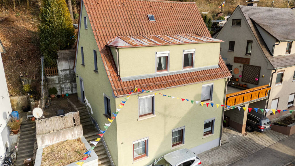 Das gepflegte Anwesen steht auf einem 202 m² großen Grundstück und bietet einen überdachten PKW-Abstellplatz auf der linken Seite des Hauses.