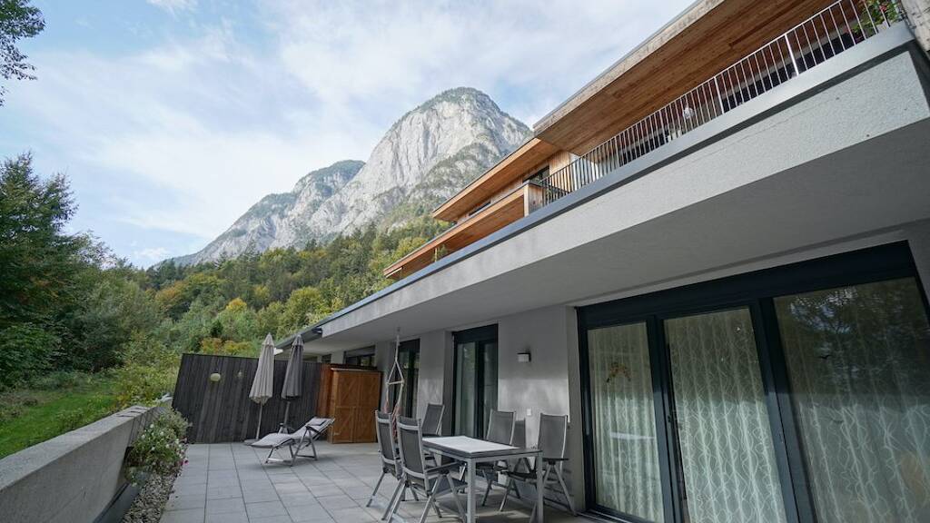 Die 3 Zimmer-Wohnung mit 93m² verfügt über zwei Schlafzimmer, einen geräumigen Wohnbereich, sowie eine bewährte Trennung von Bad und WC. Die funktionelle Küche mit einer modernen Kochinsel ist offen gestaltet, der gemütliche Esstisch dient als Zentrum für die Familie. Die außergewöhnlich große Terrasse mit direktem Zugang und der kleine, durch die Böschung entstandene Garten, bieten eine besondere Atmosphäre, im Einklang mit der Natur.