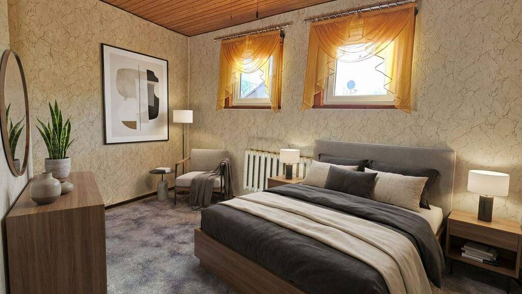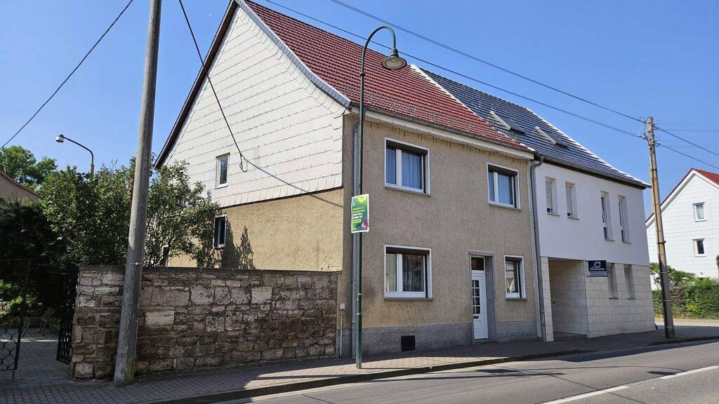 Das Reiheneckhaus ist aufgeteilt auf zwei Wohnetagen, einen Dachboden und einen Keller. Im Erdgeschoss befinden sich zwei Bäder mit Badewanne und mit Dusche, ein Arbeitszimmer, eine Küche und der Heizungsraum. Die Heizung wurde erst 2023 neu installiert und bietet mit der Brennwerttherme die neueste und effizienteste Heiztechnik. Im Obergeschoss sind drei weitere Wohnräume sowie eine zusätzliche Küche zu finden. Der Dachboden bietet weitere Staumöglichkeiten oder sogar eine Ausbaureserve. Das Dach wurde 2009 erneuert. Ein weiteres Highlight ist das große zweigeschossige Nebengebäude. Auf der unteren Etage bieten eine Waschküche und ein großer weiterer Raum mit regenwasserbetriebener Gartentoilette Platz für das Ausleben von Hobbys oder für eine Werkstatt. Im Obergeschoss des Nebengebäudes gibt es die Möglichkeit weitere ca. 50 m² Wohnraum mit separatem Eingang zu erschaffen. Des Weiteren gibt es eine große Gartenlaube, die für Feierlichkeiten jeder Art einlädt. Abschließend kann man sich als Hobbygärtner und Selbstverpfleger im großen Garten verwirklichen. Zur besseren Veranschaulichung steht Ihnen eine 360°-Online-Besichtigung zur Verfügung. Zögern Sie nicht und kontaktieren Sie uns noch heute!