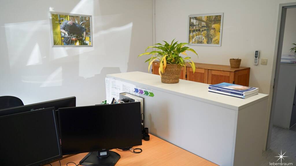Der BĂĽrotrakt besteht aus 2 separaten BĂĽros, 1 Rezeption sowie 1 Besprechungsbereich. 1 KaffeekĂĽche ist vorhanden, auch 2 separate Toiletten sind vorhanden.