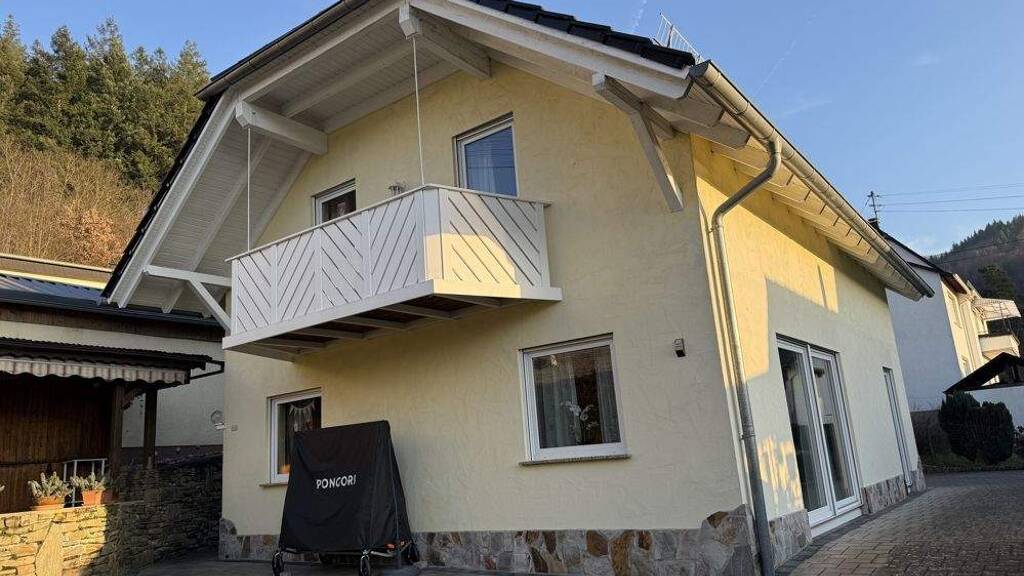 Die Raumaufteilung gestaltet sich wie folgt: - EG: Wohn-/Esszimmer, Küche, 1 Zimmer, Gäste-WC, Hauswirtschaftsraum, Diele - DG: 3 Zimmer, Badezimmer, großer Flur, Speicher, Balkon