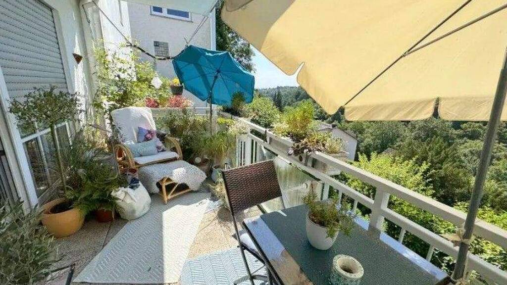 Das grüne Tal öffnet sich in seiner Schönheit vor Ihrer Wohnung. Sie sitzen hier in der ersten Reihe vor der Natur und sehen die Jahreszeiten vorbei ziehen. Durch die Hanglage haben Sie einen eigenen stufenlosen Eingang. Diese 3 Zimmer Maisonette Wohnung hat den Aussichtsbalkon und einen Gartenanteil von ca. 60 qm und liegt in der Höhenlage von Wiesbaden-Rambach. Die stadtnahe Busanbindung und der hohe Freizeitwert erwarten Sie hier in dieser kleinen Einheit. Es handelt sich um eine gute massive Bauweise der 90er Jahre. Das Wohn-Esszimmer von ca. 30 qm hat Zugang zur Küche und dem Balkon. Die Schlafzimmer im UG haben ca. 14 und 18 qm. Die Böden und das Bad sind mit Marmor gefliest und es befindet sich eine Fußbodenheizung in der Wohnung. Eine Garage sowie ein Kellerraum stehen zur Verfügung.