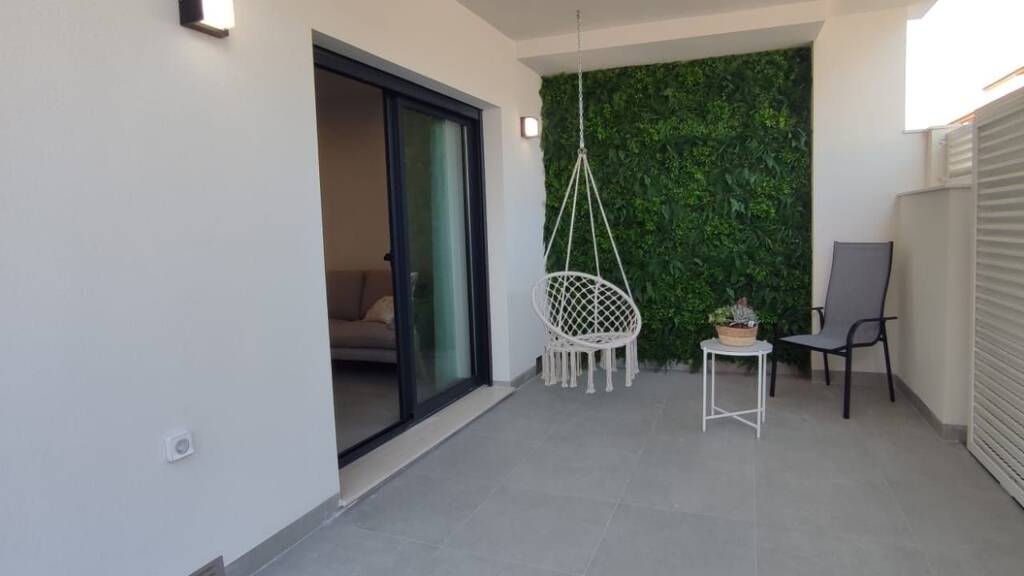 Die Innenräume sind elegant und funktional, das Layout besteht aus einem geräumigen offenen Wohn- und Essbereich mit Terrassentüren, die Zugang zur Terrasse bieten. Innerhalb des Hauptwohnraums ist eine voll ausgestattete amerikanische Küche mit Mittelinsel. Ein großes Schlafzimmer mit viel Platz im Kleiderschrank und ein separates Badezimmer. Die Optionen im obersten Stockwerk haben eine Außentreppe auf der Terrasse, die zur großen Dachterrasse führt, die ca. 53 m2 groß ist und eine Sommerküche enthält, die perfekt für Mahlzeiten im Freien ist. Zu jeder Wohnung gehört ein privater Parkplatz innerhalb der Wohnanlage.