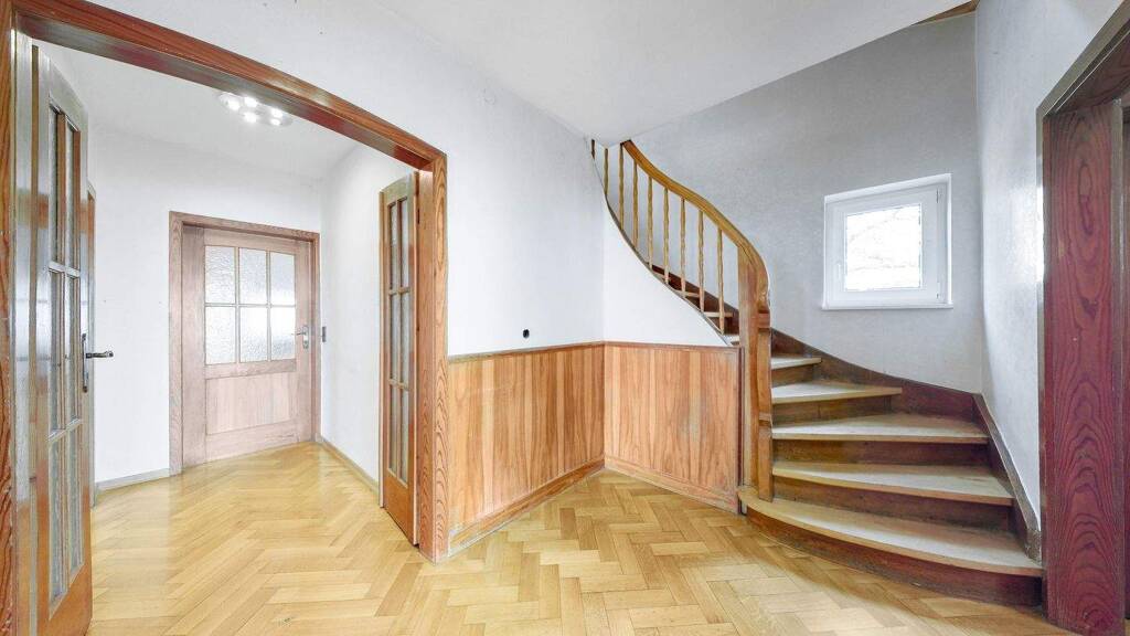 Die Wohnfläche verteilt sich auf drei Stockwerke, gerade im Ober und Dachgeschoss befinden sich jeweils drei Schlafzimmer und ein Bad + ein Büro im Obergeschoss. Im Erdgeschoss gelangen Sie vom Windfang in den wunderschönen und großzügigen Eingangsbereich mit herrlicher Holztreppe, Zugang zum Wohn Esszimmer, der Küche und dem Gäste WC Im Wohn Esszimmer gibt es einen Zugang zur überdachten Terrasse. Eine weitere Terrasse + Pergola gibt es dann noch im Garten hinter dem Haus. Praktischerweise gelange Sie durch die Küche , am Abstellraum und Kellerabgang vorbei, direkt in den traumhaften und großen Garten.