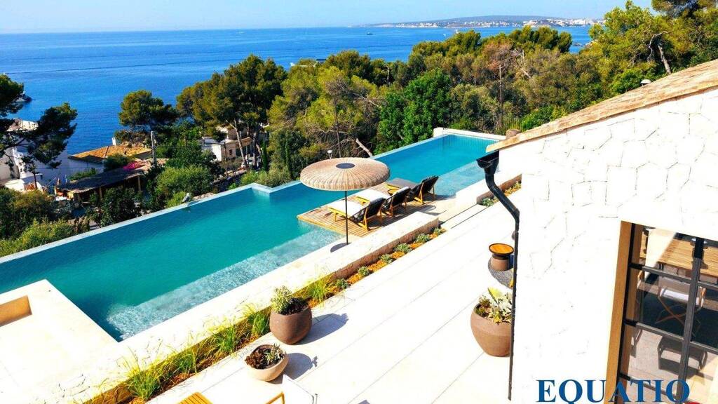 Diese prächtige Villa bietet einen atemberaubenden Panoramablick auf das Meer und die bezaubernden Inseln Cabrera und Illetas.