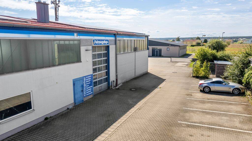 . Kfz-Werkstatt/ Pkw-Wartungshalle in solider Bausubstanz . etwa 570 m² Gewerbefläche . ca. 3000 m² Grundstücksfläche . Grundstück voll befestigt . Einfriedung des Anwesens vorhanden . Baujahr ca. im Jahre 1997 . etwa 50 Stellplätze verfügbar . Lager eingerichtet . Ausstattung kann nach Absprache übernommen werden . Glasfaser-Leitung liegt in der Straße zum Grundstück