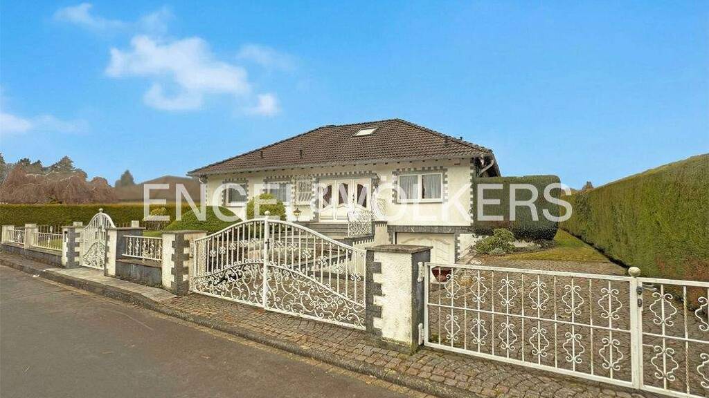 Im Jahre 1981 entstand dieses Einfamilienhaus mit Teilkeller in Massivbauweise; 1989 wurde das Dachgeschoss ausgebaut. Zum Angebot gehört eine Tiefgarage und ein angelegter, eingefriedeter Garten.