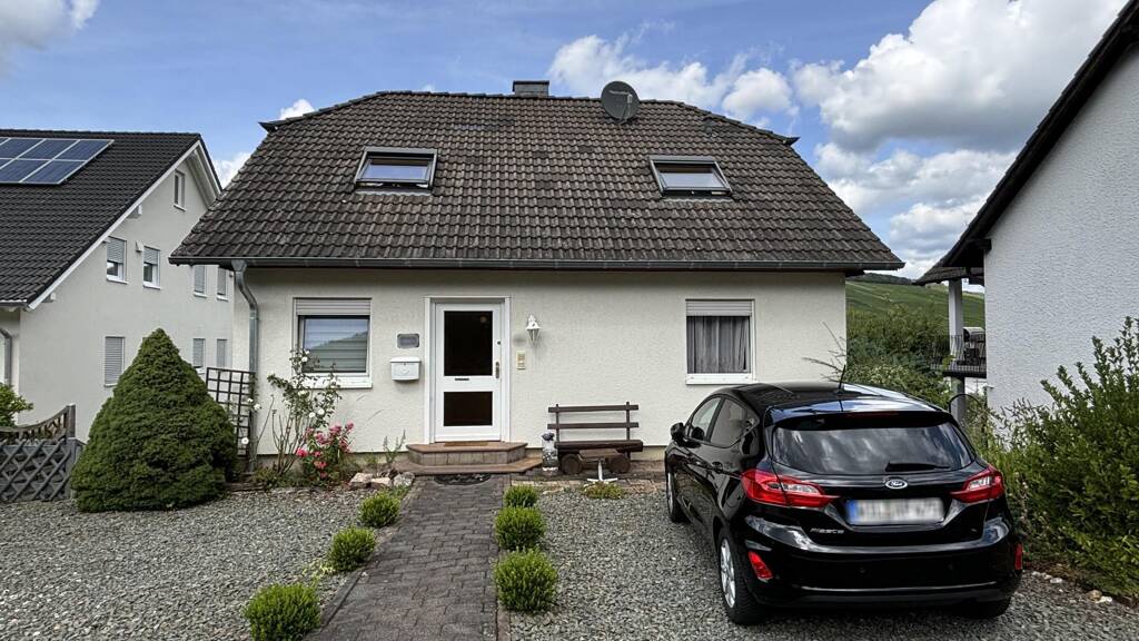 Das gepflegte Einfamilienwohnhaus mit Burgblick wurde ca. 1992 auf einem ca. 624 m² großen Grundstück in idyllischer Ortslage von Bernkastel-Andel erbaut. Eine angelegte Terrasse und herrlich hergerichtete Außenanlagen mit Rasen, Zierbeeten, Baumbestand und Ziersträuchern laden zum gemütlichen Verweilen ein.