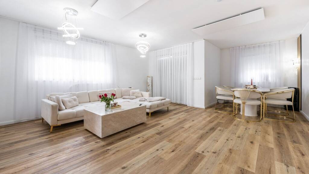 Die offene Einbauküche ist ideal für alle, die gerne kochen und dabei den Kontakt zu Familie und Freunden pflegen möchten. Der anschließende Wohn- und Essbereich bildet das Herzstück des Hauses und lädt zu gemütlichen Abenden ein. Von hier aus gelangen Sie direkt auf die Terrasse, wo Sie die sonnigen Tage in Ihrem eigenen Garten genießen können.