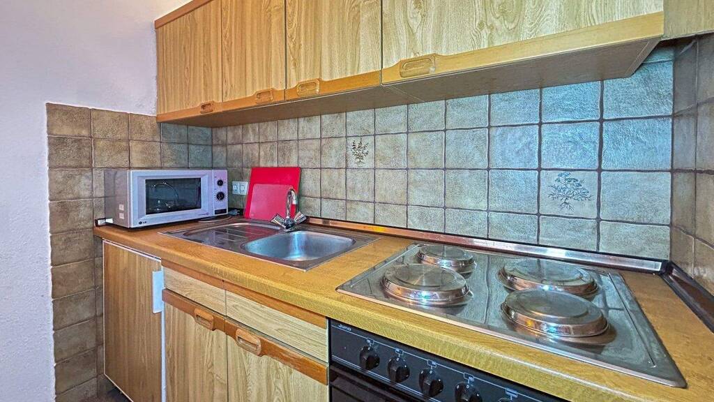 Der Wohnbereich ist hell und freundlich. Sofa, kleiner Esstisch, ein Platz zum Lesen oder einfach zum Abschalten. Die Kochnische fügt sich harmonisch ein, kompakt und funktional - perfekt für schnelle Mahlzeiten nach einem Strandspaziergang oder ein entspanntes Frühstück am Morgen.