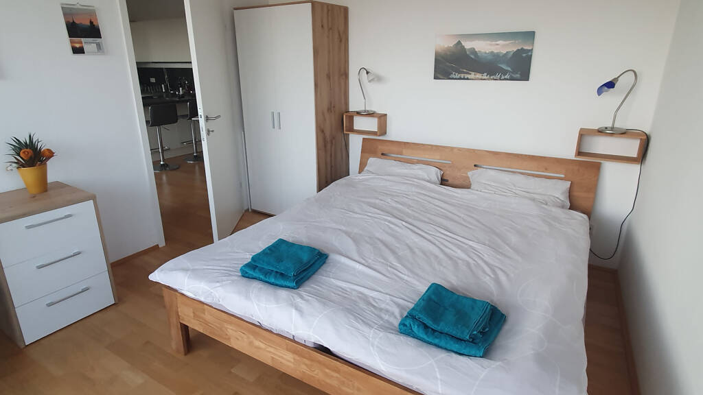 Helles Zimmer in moderner Wohnung mit großem Balkon und Whirlpool