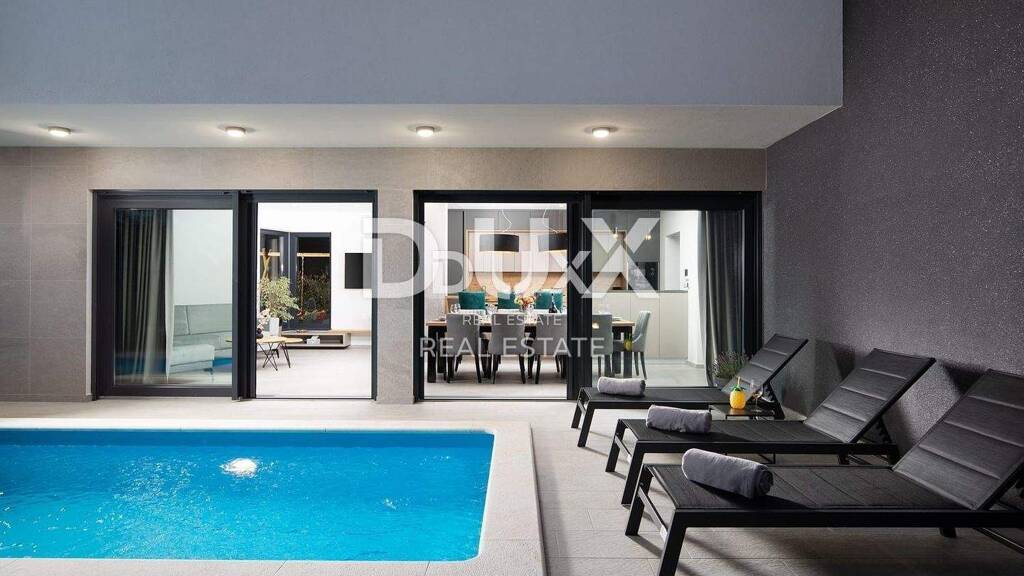 Nur 800 m vom Meer und berühmten Stränden entfernt befindet sich dieser moderne Riese, der gegen Ende 2021 erbaut wurde. Die Villa verfügt über insgesamt 300 m² Wohnfläche, die sich über zwei Etagen und einen Keller erstrecken. INFORMATIONEN: Diese tadellose, moderne Designervilla in hochwertiger Bauweise besteht aus einer charaktervollen Eingangshalle, die mit Hilfe einer massiven Glaswand Frische und Großzügigkeit ausstrahlt. Sie ist auch eines der wichtigsten Designelemente der Villa, das zu ihrem Charakter und ihrer Einzigartigkeit beiträgt. So gibt es in der Eingangshalle mit den hohen Decken eine Treppe, die den gesamten Raum der Villa verbindet und eine Kommunikation zwischen allen Etagen ermöglicht. So gibt es im Erdgeschoss der Villa einen größeren und luftigeren "Open Space"-Bereich in einem modernen mediterranen Stil, der mit einem geräumigen Essbereich eingerichtet ist, neben dem sich eine moderne und hochwertig ausgestattete Küche mit einer langen Bar befindet. Am Ende desselben Raumes befindet sich ein idealisiertes und luftiges Wohnzimmer. Der gesamte Raum ist dank einer Glaswand, die sich über die gesamte Länge des Raumes erstreckt, in Tageslicht getaucht und bietet einen Blick auf den Pool und den Innenhof. Durch dieselbe Glaswand führt auch ein Ausgang zu einer kleineren überdachten Außenterrasse und einem Sonnendeck. Weiter, im privaten Teil des Erdgeschosses, der durch einen Flur abgetrennt ist, befinden sich drei Schlafzimmer, jedes mit eigenem modernen Bad, während eines der Schlafzimmer direkten Zugang zum grünen Garten und zum Pool bietet. Das Obergeschoss ist über eine moderne Treppe mit einer Kombination aus Glasgeländern, Metallkonstruktionen und Holzstufen erreichbar. Dort befinden sich weitere fünf Schlafzimmer, jedes mit eigenem Bad. Zwei davon haben eine gemeinsame, größere, überdachte Terrasse. Eines dieser fünf Schlafzimmer ist das "Hauptzimmer", das über einen längeren Glasflur zugänglich ist, der sich entlang der größeren Gemeinschaftsterrasse erstreckt. Da es sich um eine Villa mit hohem Standard handelt, gibt es im Untergeschoss einen "Spa-Bereich" mit eigener Sauna und Ruhebereich. GARTEN; Der Hof ist komplett eingezäunt und vor der Villa gibt es ausreichend Parkplätze für 4 bis 5 Autos. Der zentrale Teil des Gartens auf der Rückseite der Villa wird von einem 30 m2 großen beheizten Swimmingpool und einer Liegewiese eingenommen. Es gibt auch eine überdachte Terrasse zum Entspannen mit Ihrem Lieblingsbuch und einem Glas Wein sowie eine Sommerküche mit Baldachin und ein kleines Nebengebäude, das als Abstellraum dient. Für die Kleinsten gibt es einen kleinen Kinderpark mit Grünflächen. ZUSÄTZLICHE INFORMATIONEN: * Die Villa verfügt über Fußbodenheizung auf allen Etagen. * Jedes Zimmer ist klimatisiert. * Auf den Böden ist hochwertige Keramik verlegt. * Außerdem wurden anthrazitfarbene PVC-Tischlereiarbeiten mit elektrischen Rollläden und Moskitonetzen installiert. * Die Villa wird voll möbliert verkauft, wie auf den Bildern, dem Video und dem 3D-Rundgang zu sehen ist. * Die Villa ist derzeit zur Miete verfügbar und die Ankündigungen für die Saison 2024 übertreffen die Erwartungen. Das bedeutet, dass Sie mit dem Kauf einer Villa ein bereits gut etabliertes und sicheres Unternehmen mit garantierter Kapitalrendite übernehmen. LAGE: In Anbetracht der Tatsache, dass dies einer der meistbesuchten Orte in Südistrien ist, das berühmte Medulin, ist es wichtig zu beachten, dass Medulin, reich an Kulturgeschichte, einst ein kleines Fischerdorf mit günstiger geografischer Lage, einem gut geschützten Hafen und fruchtbarem Hinterland war, was zu seiner wirtschaftlichen Entwicklung beitrug. Heute gilt es als eines der besten Reiseziele in Kroatien. Diese idealistische, moderne Villa befindet sich hier, in der Nähe zahlreicher Restaurants, Cafés, eines aktiven Nachtlebens und einer Fülle von Kultur. Es ist ein idealer Ort, um Ihre Freizeit während der Sommermonate zu verbringen oder als Option für ein ganzjähriges Leben. Zahlreiche Geschäfte und andere Elemente, die für den Komfort eines modernen Lebensstils unerlässlich sind, befinden sich in unmittelbarer Nähe der Villa. Die berühmten Sandstrände und die berühmte Medulin Riva, das Zentrum des Geschehens, sind nur 800 m entfernt. Ungeachtet der Nähe zu den zahlreichen Angeboten von Medulin befindet sich die Villa dennoch in einer ruhigen Lage ohne Touristenlärm und Verkehr.