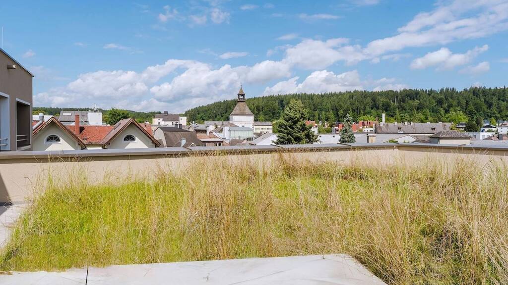Diese ruhige und hofseitig ausgerichtete 3-Zimmer-Dachgeschosswohnung befindet sich im absolutem Stadtzentrum von Vöcklabruck. Die Immobilie verfügt über ein großzügiges Wohnzimmer mit viel Platz für eine gemütliche Wohnküche mit Kochinsel. Anschließend an das Wohn- und Schlafzimmer liegt die nach Süd-West ausgerichteten Loggia. Zusätzlich zur Wohnung, mit nur wenigen Schritten über den Stiegenhausflur (ca. 8 Meter) erreichbar, gehört ein begrünter Dachgarten mit ca. 58 m² - herrliche Panoramasicht Richtung Traunstein und über Teile der Stadt. Das Bad verfügt über eine Badewanne. Die Toilette ist separat. Der Wohnung sind 2 Tiefgaragenplätze zugeordnet!
