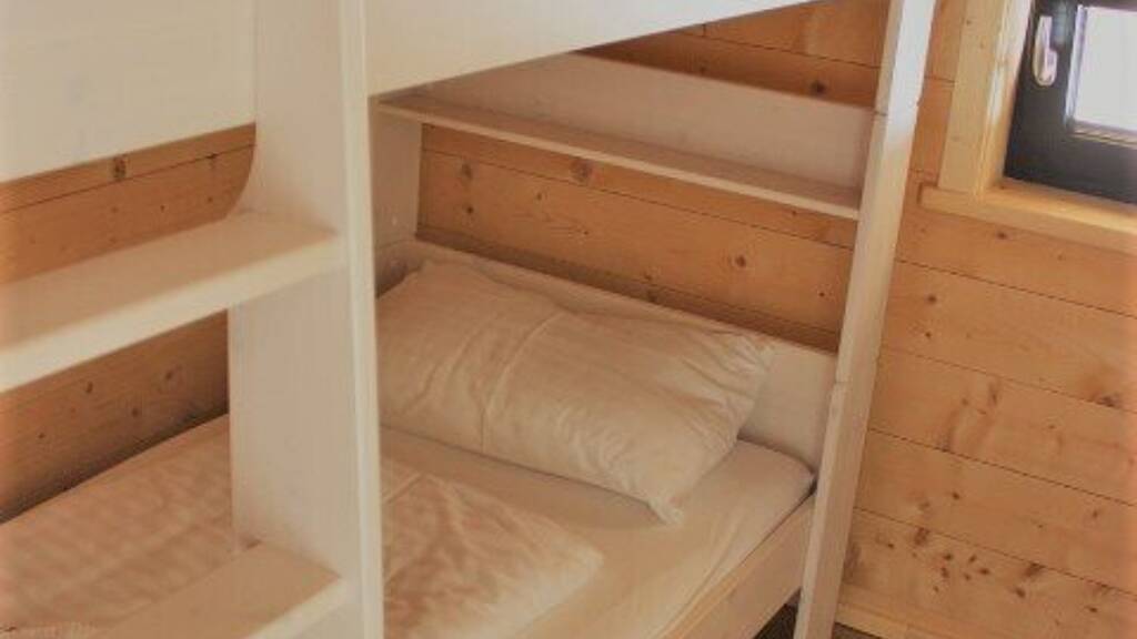 1Chalet/Haushälfte mit jeweils: - 3 Schlafzimmer (2x Doppelbett und 1x Etagenbett) - geräumige Küche mit Induktionskochfeld, Geschirrspüler und Gefrierschrank - Bad - komplett möbliert - Balkon vorne und hinten - 2 Parkplätze