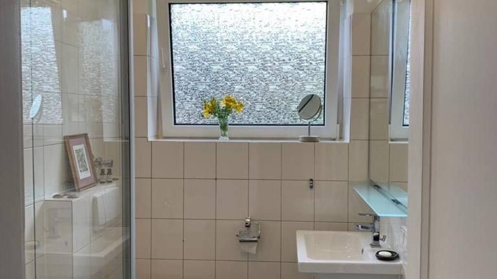 Ein Zuhause auf Zeit in einem charmanten, frisch renovierten und liebevoll eingerichteten 3-Zimmer Apartment, das auf 65 m2 gemütliches Ambiente mit modernen Komfort kombiniert. Die moderne Designerküche ist mit hochwertigen Geräten ausgestattet und öffnet sich zu einem gemütlichen Essbereich, der ideal auch als Arbeitsplatz genutzt werden kann. Im Wohnzimmer lädt ein bequemes Sofa zum Ausspannen ein. Im geräumigen Schlafzimmer mit Kleiderschrank und Kommode befindet sich ein großes Doppelbett (1,80 mal 2,00 m). Die Waschmaschine befindet sich im Keller des Hauses. Das Tageslichtbad verfügt über eine Badewanne mit Duschabtrennung, WC und ein Waschbecken mit großem Spiegel und Ablagemöglichkeit.
