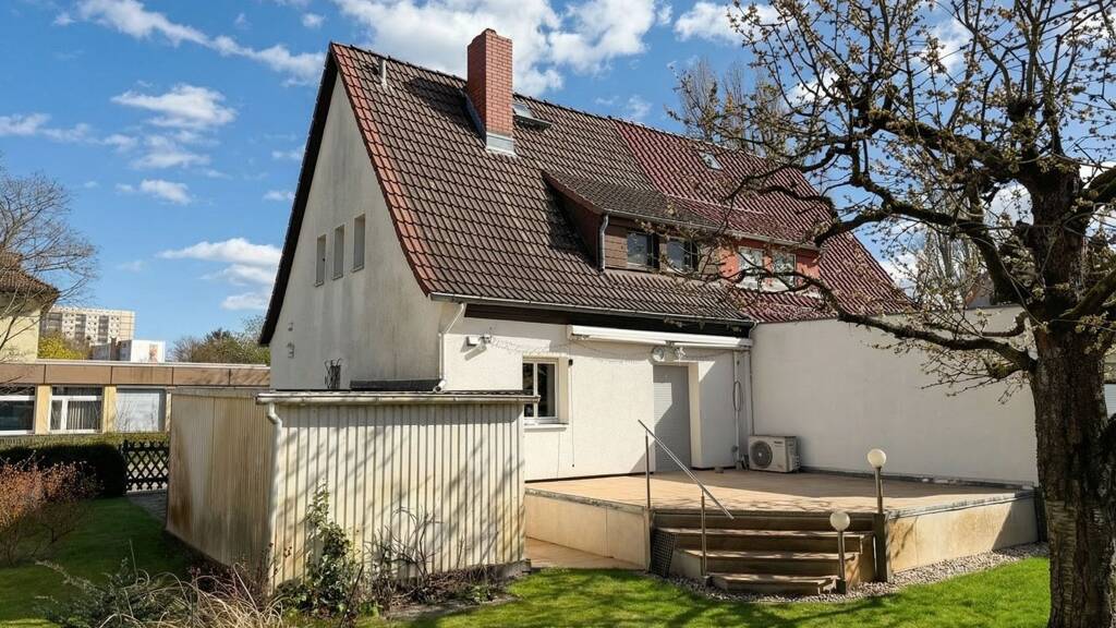 Die im Jahr 1936 errichtete Doppelhaushälfte präsentiert sich als gepflegtes, massiv gebautes Wohnhaus mit einer Wohnfläche von ca. 87?m², verteilt auf Erd- und Dachgeschoss. Das vollunterkellerte Gebäude wurde in den vergangenen Jahren kontinuierlich instandgehalten und modernisiert und bietet damit einen soliden Gesamtzustand mit charmantem Altbaucharakter. Im Erdgeschoss überzeugt ein offen gestalteter Wohn- und Essbereich mit integrierter Küche und direktem Zugang zur großzügigen, ca.?23?m² großen Westterrasse. Ein kleines Gäste-WC sowie ein Flur ergänzen das Raumangebot dieser Etage. Das Dachgeschoss verfügt über zwei Zimmer, einen Flur sowie ein Tageslichtbad mit Dusche. Eine Garage befindet sich direkt neben dem Wohngebäude. In den letzten Jahren wurden zahlreiche Modernisierungen durchgeführt: Die Fenster wurden um das Jahr? 2000 erneuert, die Heizungsanlage und Sanitärinstallationen 2006 umfassend modernisiert, Leitungen im Jahr?2017 teilweise erneuert sowie eine energetische Fassadendämmung 2016 umgesetzt. Die Terrasse wurde 2019 neu angelegt. Zur Ausstattung gehören unter anderem Kunststofffenster mit Isolierverglasung, teilweise elektrische Rollläden sowie Klimaanlagen im Wohn- und Schlafzimmer. Ein Brunnen für die Gartenbewässerung ergänzt das Angebot. Die Grundrissgestaltung entspricht modernen Wohnansprüchen und eignet sich ideal für einen Ein- bis Zwei-Personen-Haushalt.
