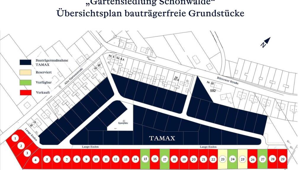 Bereits 23 Familien haben sich für ein Grundstück in dem Baugebiet "Gartensiedlung Schönwalde" entschieden und haben gebaut oder fangen in den nächsten Monaten an. Weitere 2 Grundstücke sind reserviert. Es stehen nur noch 4 Grundstücke zur freien Wahl. Es besteht viel Raum für Ihr kreatives Hausbauprojekt, welches Sie hier rechts- und kostensicher mit einer Hausbaufirma Ihrer Wahl umsetzen können.