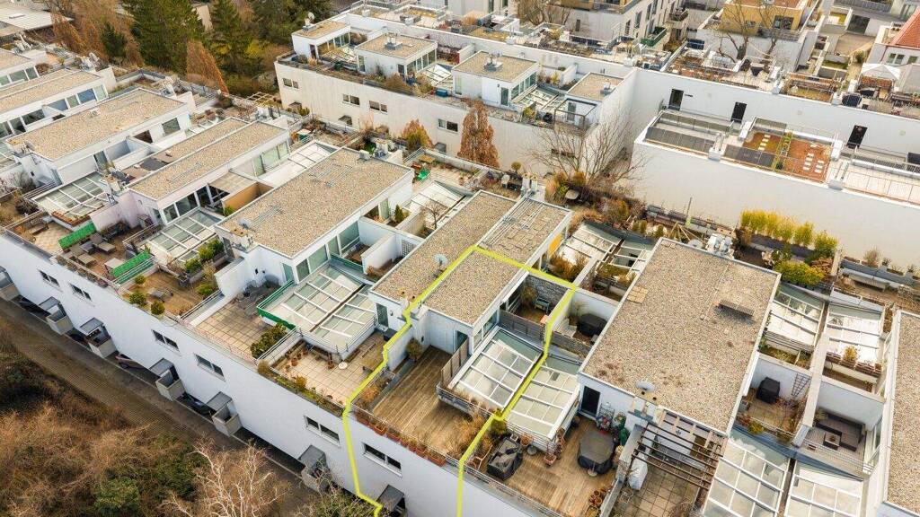 Zum Verkauf steht dieses außergewöhnliche Atriumreihenhaus mit rund 130 m² Wohnfläche und zwei Terrassen. Das Reihenhaus ist Teil einer exklusiven Wohnanlage mit 42 Einheiten, die 1999 vom renommierten Architekten Walter Stelzhammer konzipiert und von BUWOG errichtet wurde und sich in einer ruhigen Privatstraße befindet.