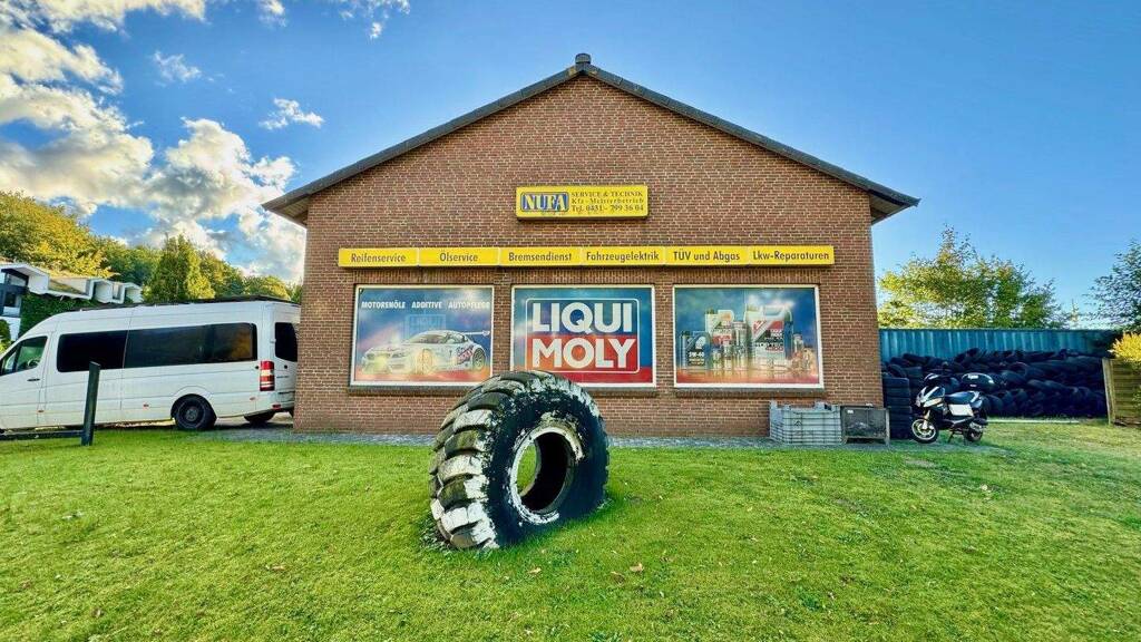 Das Ensemble umfasst eine gut aufgeteilte Werkstatt mit drei Hebebühnenarbeitsplätzen, Lagerfläche, einer großen LKW-Halle sowie Sozialraum inklusive Dusche. Für die Werkstattleitung steht ein eigenes Büro zur Verfügung.
