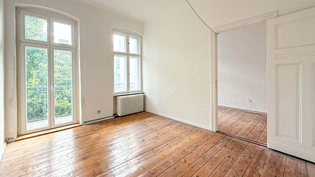 Entdecken Sie dieses charmante Altbaujuwel in einem klassischen Wilmersdorfer Ensemble aus dem Jahr 1908, das mit seiner sanft rosafarbenen Fassade und dem begrünten Innenhof einladend wirkt. Im dritten Obergeschoss des Vorderhauses links erwartet Sie eine großzügige 5-Zimmer-Wohnung auf rund 144 Quadratmetern, die den zeitlosen Charme traditioneller Baukunst atmet. Hohe Decken, lichtdurchflutete Räume und typische Details wie Parkett- und Dielenböden, Stuckelemente sowie altbautypische Holzkastendoppelfenster verleihen dem Zuhause eine einzigartige Atmosphäre - ideal für Familien, die Eleganz und Gemütlichkeit suchen. Der Grundriss ist großzügig und familienfreundlich gestaltet. Der Eingang liegt direkt in dem geräumigen Flur von rund 10 Quadratmetern. Das Zimmer 1 ist das Größte mit fast 26 Quadratmetern und bildet den repräsentativen Mittelpunkt zur Straßenseite, es lädt zum Wohnen und Genießen ein. Angrenzend öffnet sich Zimmer 2 mit 23 Quadratmetern, gefolgt von Zimmer 3 mit 24 Quadratmetern. Das dritte Zimmer ist ein Durchgangszimmer und führt zu einem weiteren Flur. Von dort aus erreichen Sie Zimmer 5 mit 16 Quadratmetern und das kleinere Zimmer 6 mit 11 Quadratmetern, die sich hervorragend als Schlaf-, Arbeits- oder Kinderzimmer eignen. Die Küche mit fast 12 Quadratmetern rundet den hinteren Bereich ab und bietet Platz für kulinarische Kreationen. Ein Bad mit Badewanne sorgt für Wellnessmomente, ergänzt durch zwei praktische Abstellräume. Besonders hervorzuheben sind der große Balkon mit Südausrichtung von rund 6 Quadratmetern, der zum Entspannen im Freien einlädt, sowie ein weiterer Balkon zur Ostseite für zusätzliches Licht und Frische. Die Wohnung ist leerstehend und sanierungsbedürftig, was Ihnen maximale Freiheit für eine individuelle Modernisierung bietet - vom Erhalt der originalen Stilelemente bis hin zu zeitgemäßen Annehmlichkeiten. Hier entsteht Ihr persönliches Traumzuhause in ruhiger, grüner Lage mit exzellenter Anbindung an ÖPNV, Parks und die lebendige Stadt. Lassen Sie sich von diesem Potenzial verzaubern und gestalten Sie Ihr neues Leben in stilvollem Altbauflair.