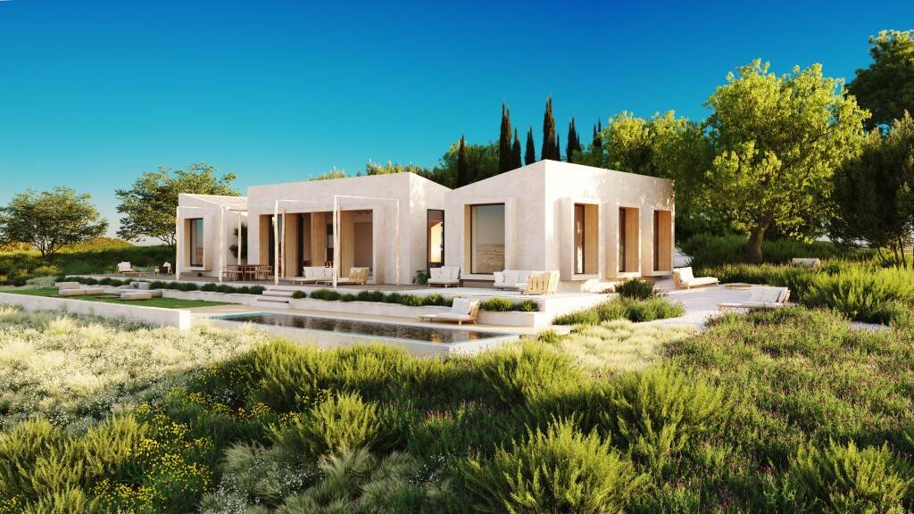 Das Haus wird eine bebaute Fl?che von ca. 260m2 haben und aus hochqualitativen nachhaltigen Materialien und einem umweltfreundlichen Design bestehen, das Elemente wie Sonnenkollektoren und einen eigenen Brunnen f?r die vollst?ndige Selbstversorgung beinhaltet.