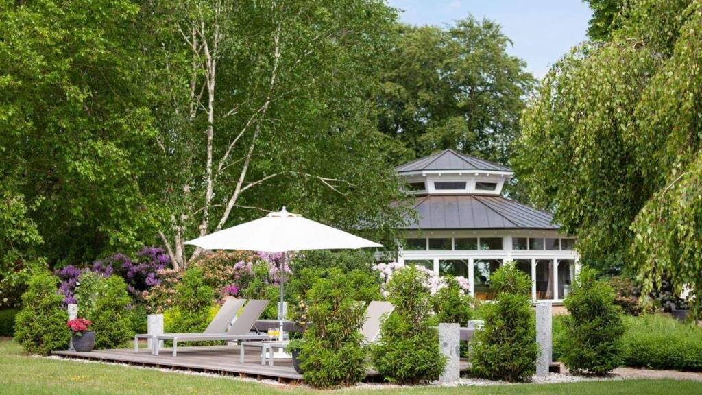 Die Außengastronomie bietet einen beheizbaren Gartenpavillon mit ca. 40 Plätzen sowie einen großzügigen, teilweise überdachten Außenbereich mit Outdoorküche und Bestuhlung für insgesamt ca. 80 Personen. Das parkähnlich gestaltete Außengelände fügt sich harmonisch in die umgebende Landschaft ein.