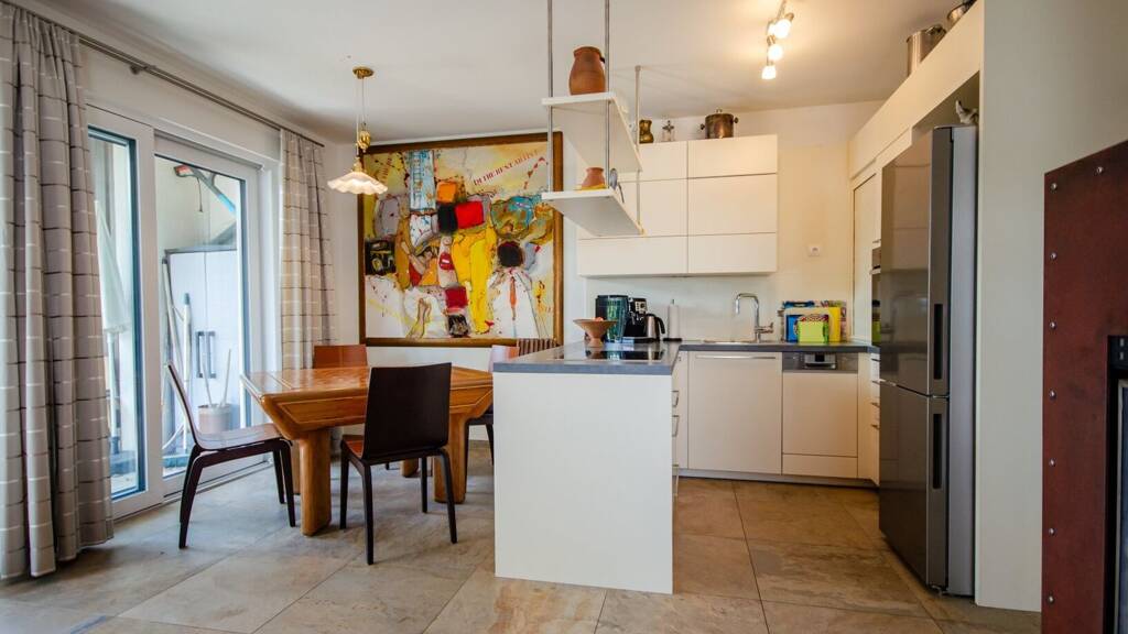 Die Wohnung wird nahezu komplett möbliert übergeben: Sie können sofort einziehen, denn bis auf die Kunstwerke/Bilder und den Esstisch bleibt die gesamte Einrichtung für Sie erhalten. Für noch mehr Wohnkomfort sorgen elektrische Raffstores, die Ihnen Licht, Sicht und Privatsphäre nach Wunsch regulieren.
