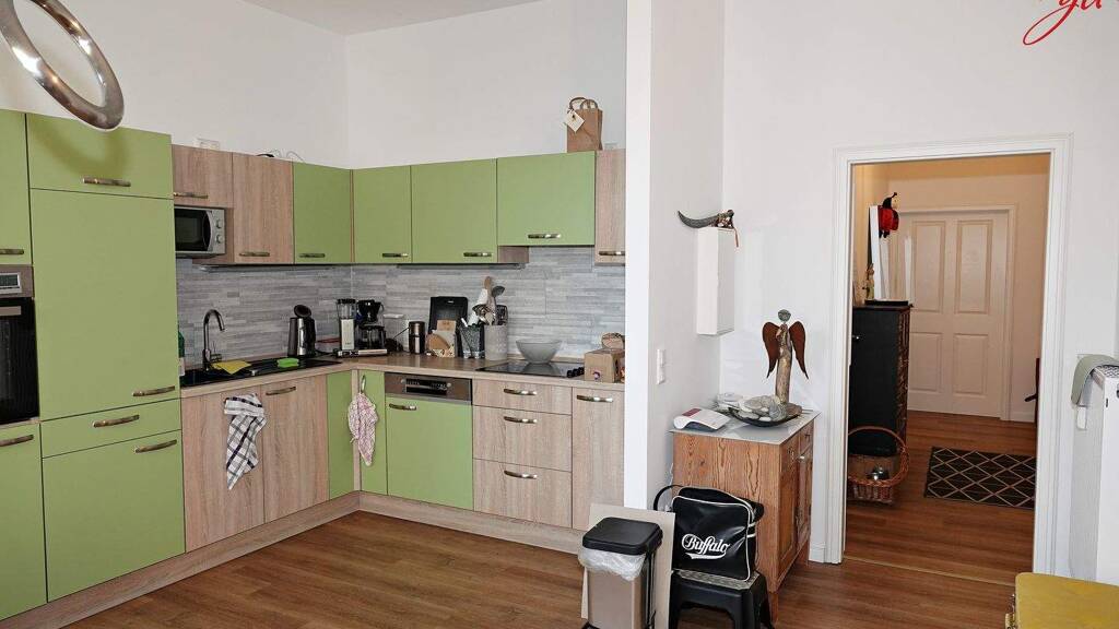- ideale Lage zur Innenstadt - gepflegter Allgemeinzustand - geräumige Raumaufteilung - Küche mit funktionsfähiger Einbauküche - modernes Badezimmer - historisches Wohnzimmer mit Kronleuchter und Kachelofen - eigener Kellerraum - externer Abstellraum für Fahrräder