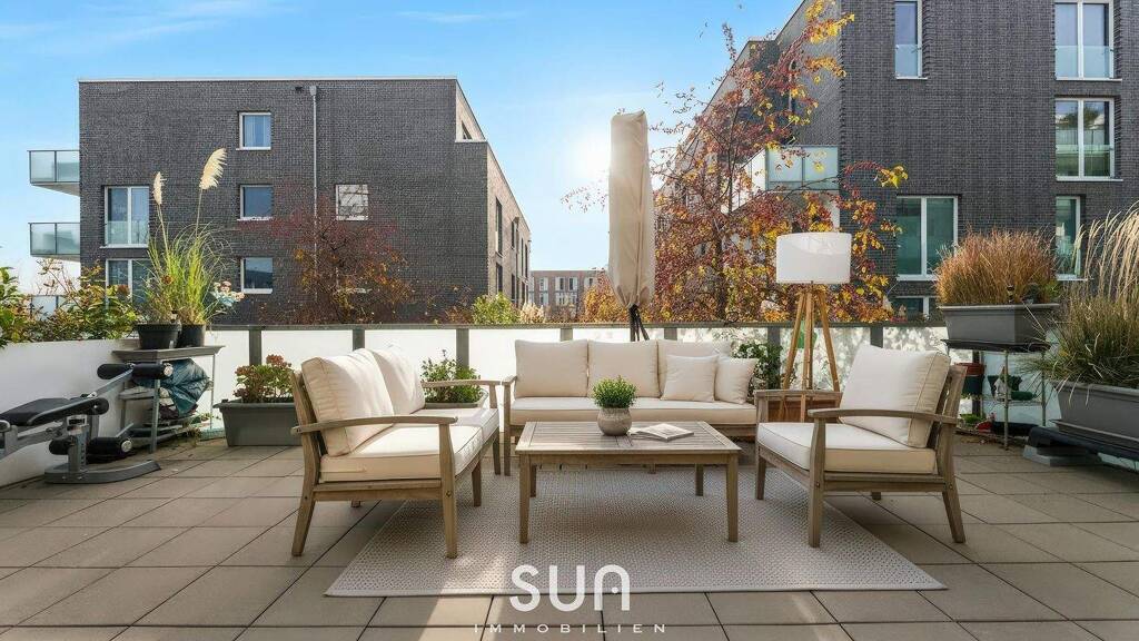Besonders beeindruckend ist die weitläufige Terrasse, die den Wohnraum erweitert und ein Ort für Sonne, Entspannung und gesellige Abende wird - ein echtes Stück Lebensqualität mitten in Frankfurt.
