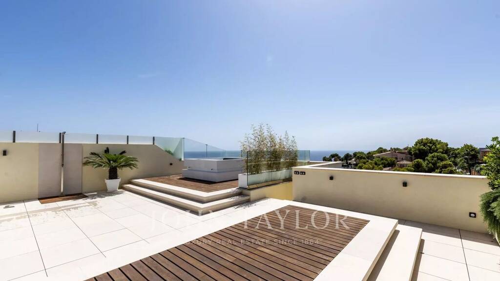 Wir bieten Ihnen ein spektakuläres, renoviertes Penthouse mit höchster Qualität an, das sich in einer exklusiven und gepflegten Wohnanlage in der angesehenen Gegend von Bendinat befindet. Das Anwesen ist in einem geräumigen Wohn-Esszimmer und eine elegante separate Küche mit Naturstein-Arbeitsplatte verteilt. Es gibt 3 Schlafzimmer, darunter ein Hauptschlafzimmer mit Bad en suite. Von den beiden anderen Schlafzimmern hat eines ebenfalls ein Bad en suite, während das dritte Schlafzimmer Zugang zu einem separaten Bad hat. Auf dieser Ebene bietet eine Terrasse einen angenehmen seitlichen Meerblick. Eine der Hauptattraktionen ist zweifelsohne die beeindruckende 200 m² große Sonnenterrasse mit Außenküche, Whirlpool und Chill-out-Bereich, die zum Entspannen und Genießen der Umgebung einlädt. Die Wohnanlage verfügt über einen schönen Swimmingpool, der von angelegten Gärten umgeben ist. Zwei Tiefgaragenplätze und ein Abstellraum vervollständigen dieses außergewöhnliche Angebot.