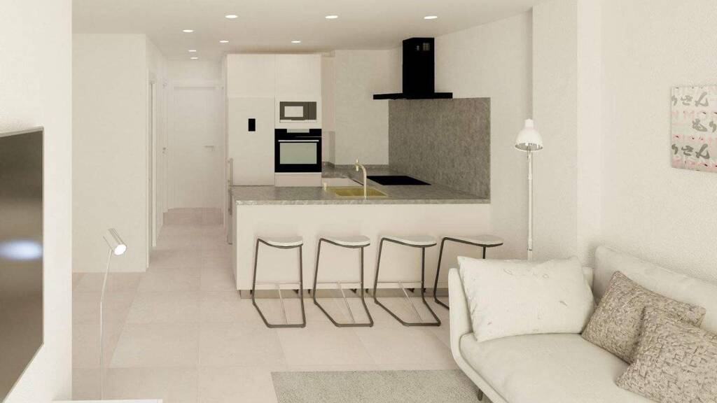 Die Innenräume vereinen Qualität und Funktionalität: Elegante Porzellanfliesen, moderne Geräte und Klimaanlage sorgen für ganzjährigen Komfort. Die Grundrisse mit zwei oder drei Schlafzimmern und einem oder zwei Badezimmern bieten Flexibilität für unterschiedliche Familienbedürfnisse. Alle Wohneinheiten verfügen über Terrassen, die zusätzlichen Platz zum Verweilen an der frischen Luft bieten. Die Erdgeschosswohnungen ermöglichen zudem einen direkten Übergang zwischen Innen- und Außenbereich.