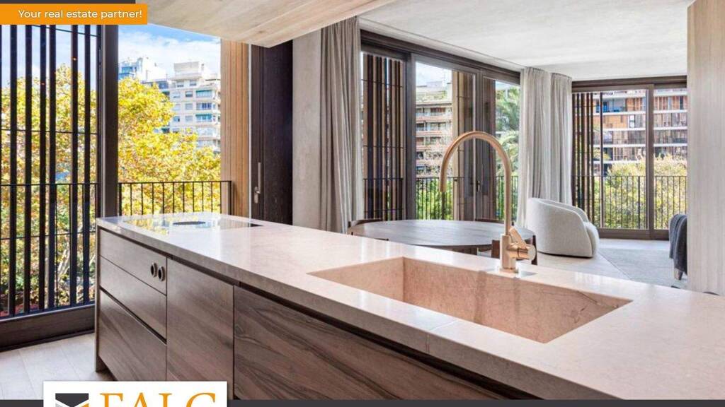 Diese attraktive Neubau-Wohnung in Palma befindet sich in einer schöner Lage am Paseo Mallorca, der von Bäumen gesäumten Promenade mit Blick auf den Riera-Wasserlauf. Der seit 2022 fertiggestellte Wohnkomplex mit einer aussergewöhnlichen Architektur setzt auf Nachhaltigkeit, Energieeffizienz und Komfort. Beim Bau, sowie beim Innenausbau wurden nur Materialien von höchster Qualität verwendet. Diese Bauweise entspricht dem nZEB-Standard (Nearly Zero Energy Building) für den Verbrauch. Das exklusive Apartment mit ca. 151 m2 Wohnfläche ist wie folgt aufgeteilt: Eingangsbereich, helles Wohn-Esszimmer, voll ausgestattete Küche, Hauswirtschaftsraum, ein Gäste-WC sowie 3 Schlafzimmer, 2 Badezimmer, eines davon sie en-suite. Das Wohnzimmer und das Esszimmer verfügen über große Schiebefenster mit UV-Schutz. An der Fassade befinden sich außerdem Schiebejalousien aus Holz mit vertikalen Lamellen, die bei Bedarf die Sonne hereinlassen und so ein fantastisches Licht- und Schattenspiel in den Innenräumen zaubern.