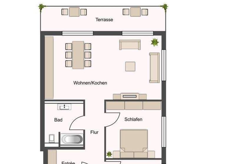 Die in massiver Bauweise errichtete Immobilie besticht durch moderne Architektur und hochwertige Materialien. Genießen Sie das offene Raumkonzept des lichtdurchfluteten Wohnzimmers, das nahtlos in die stilvolle Küche übergeht. Ein separates Schlafzimmer bietet Ihnen Ruhe und Rückzugsmöglichkeiten, während das moderne Badezimmer mit eleganten Armaturen überzeugt.