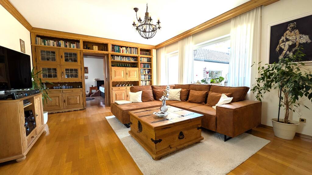 Highlights der Immobilie: - Kulinarischer Komfort: Zwei moderne Einbauküchen - eine im Erdgeschoss und eine im Obergeschoss - erfüllen höchste Ansprüche an Funktionalität und Design. - Outdoor-Oase: Die nach Süden ausgerichtete Terrasse im Erdgeschoss, 2018 hochwertig neu gestaltet, verfügt über eine Überdachung, einen Sonnenschutz und einem Kamin, welcher zum Grillen einlädt. Ergänzt wird sie durch einen separaten, idyllischen Innenhof - ein Rückzugsort für entspannte Stunden im Freien. Im Obergeschoss lädt ein großzügiger Balkon (ca. 14 m²) zum Verweilen ein. - Gartenparadies: Der weitläufige Südgarten bietet reichlich Platz für Erholung, Spiel und gärtnerische Kreativität - ideal für Familien und Naturliebhaber. - Gepflegter Zustand: Das Haus wurde kontinuierlich modernisiert, 1983 erweitert und 2018 mit einem neuen Fassadenanstrich versehen. Ein separater Anbau für Gartengeräte komplettiert das Angebot.