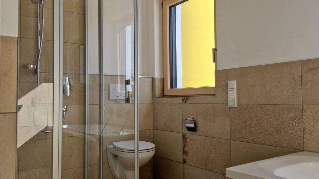 - Bad mit Fenster, großer Badewanne und begehbarer Dusche und mit Waschmaschinenanschluss