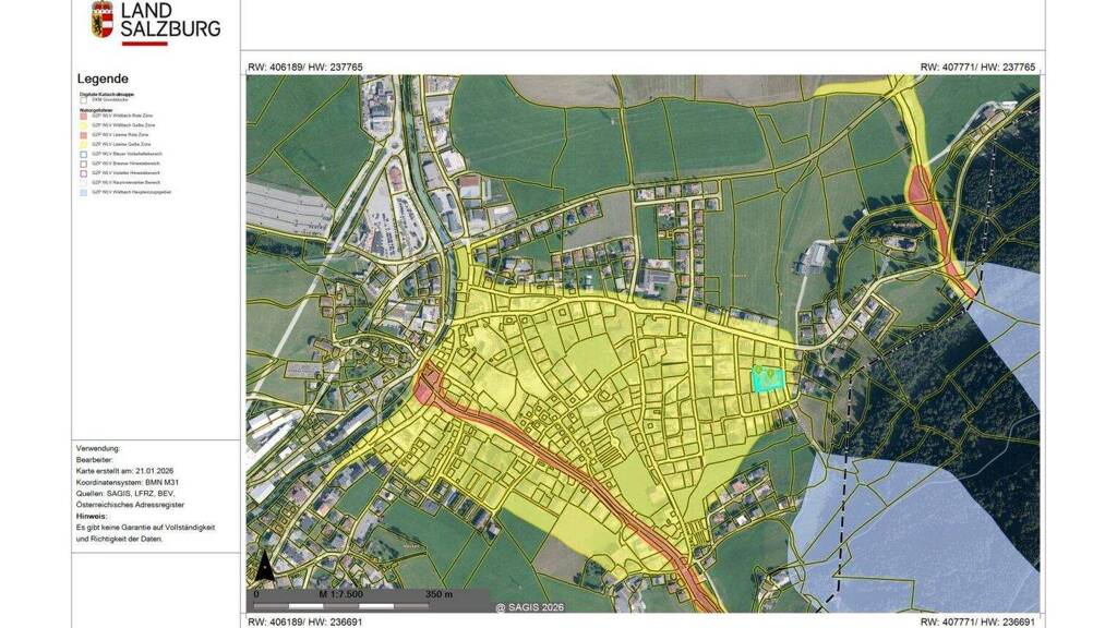 Laut Gefahrenzonenausweisung - Naturgefahren WLV befindet sich die Liegenschaft in der Gelben Gefahrenzone.