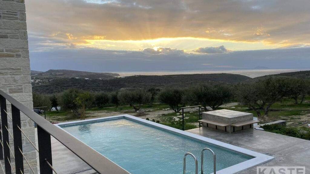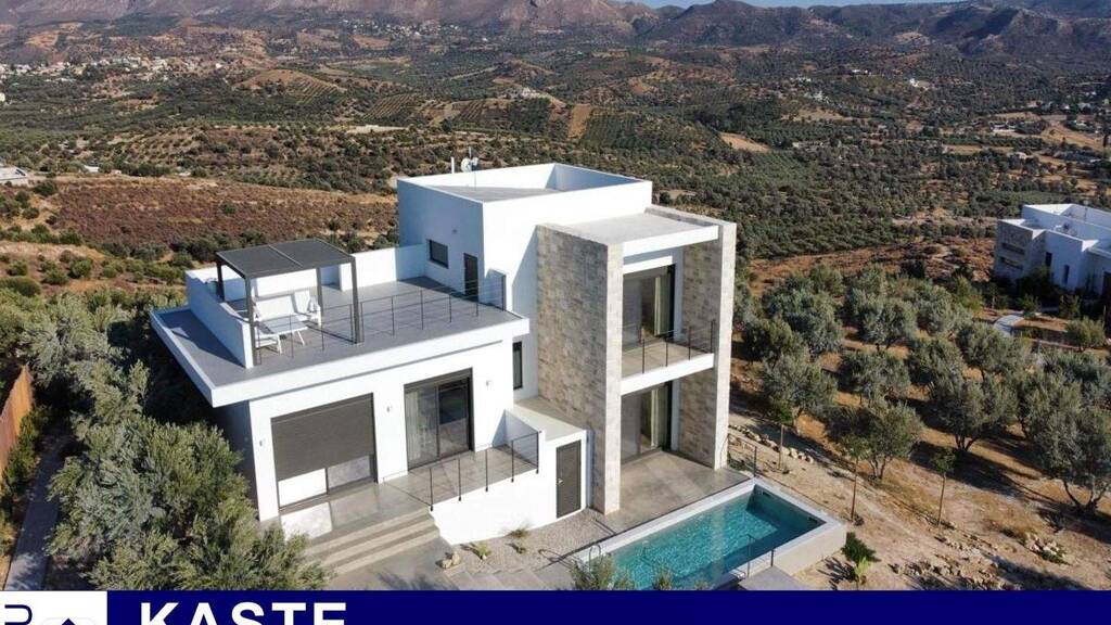 Diese spektakuläre Villa in Heraklion auf Kreta steht im Dorf Kamilari zum Verkauf und bietet einen atemberaubenden Blick auf das Meer und die Berge. Sie hat eine Gesamtwohnfläche von 160 m² auf einem 2000 m² großen Grundstück, das sich über 2 Etagen erstreckt. Sie besteht aus 2 Schlafzimmern und 2 Badezimmern. Es gibt eine hochwertige offene Küche, einen Wohn-Essbereich und eine Waschküche. Auf derselben Etage befinden sich ein Badezimmer mit begehbarer Dusche und ein Schlafzimmer mit Fenstern, die zum Swimmingpool führen und einen wunderschönen Blick auf das Meer bieten. Im Obergeschoss befindet sich eine private Etage mit einem Schlafzimmer und einem großen Badezimmer mit Dusche und Balkon, von dem aus man einen ungehinderten Blick auf das Meer und die Berge hat. Es handelt sich um ein modernes Gebäude mit Photovoltaikmodulen, einer Wärmepumpe, Fußbodenheizung und Gebläsekonvektoren zur Kühlung. Im Außenbereich verfügt das Anwesen über einen angelegten Garten und einen Olivenhain. Außerdem gibt es einen Swimmingpool und einen Bereich zum Sonnenbaden, wo Sie sich entspannen und den atemberaubenden Blick auf das Meer und den Sonnenuntergang genießen können.