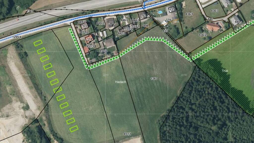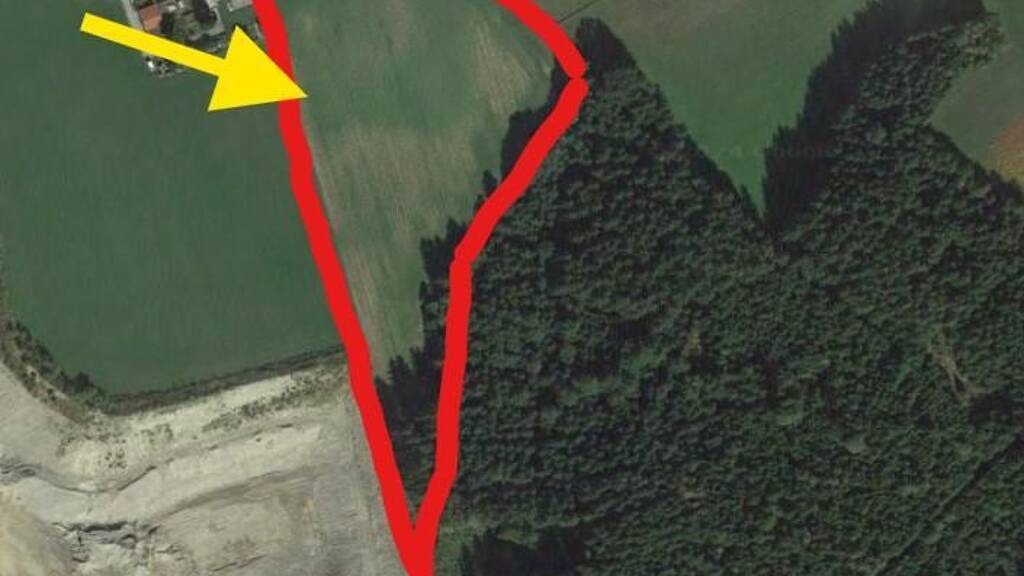 Ebene Ackerfläche (teilweise Dorfgebiet) + kleine Waldparzelle