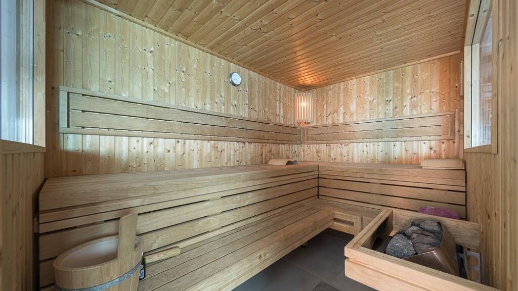Die untere Etage des Hauses ist der Entspannung und dem Wohlbefinden gewidmet und bietet mit einer Sauna, einem Fitnessbereich, einem Badezimmer und einem Hauswirtschaftsraum einen Zufluchtsort für Erholung und Zweckmäßigkeit.