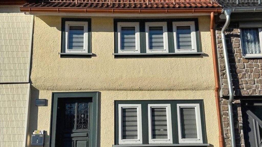 Das Einfamilienhaus befindet sich in einem äußerst gepflegten & bezugsfertigen Zustand. Das liebevoll restaurierte Reihenmittelhaus kombiniert die Fachwerkbauweise mit ländlichen Werten auf kleinem Wohnraum. Es ist zweckmäßig ausgestattet und bietet zwei bis drei Personen ausreichend Platz, Ihren Traum vom Eigenheim zu verwirklichen. Das bezahlbare Haus bietet auf zwei Wohnetagen insgesamt vier Zimmer (eines davon als Durchgangszimmer), eine Küche mit offenem Essbereich, zwei Bäder, ein extra Gäste-WC, eine großzügig angelegte Balkonterrasse und eine Multifunktionsgarage mit integriertem Abstellraum, welcher zuletzt als Künstleratelier diente. Im Hofbereich gibt es dazu noch einen Abstellraum für beispielsweise Gartengeräte.