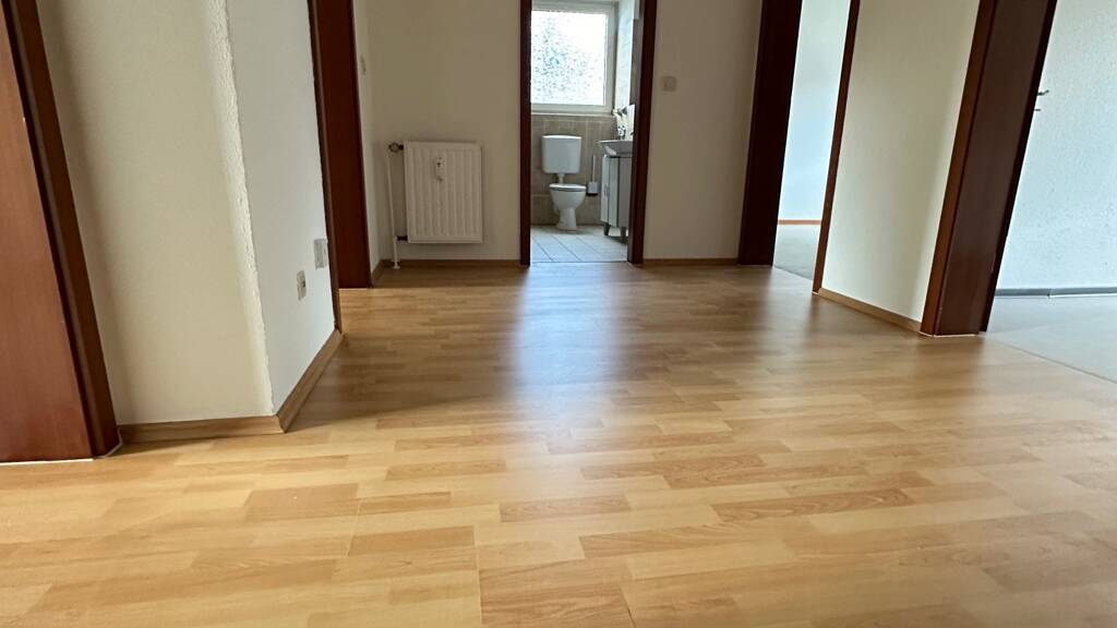 Die Wohnung liegt in der ersten Etage eines 6-Familienhauses und ist im Flur und Wohnzimmer mit einem Laminatboden ausgestattet, sowie im Bad mit einem Fliesenboden. In den übrigen Räumen kann der Bodenbelag nach Wunsch selber von Ihnen verlegt werden. Des Weiteren verfügt die geräumige 3,5 Zimmer Wohnung über ein Badezimmer mit Tageslicht, einer Badewanne und Anschlüssen für die Waschmaschine/Trockner in der Wohnung. Zu der Wohnung gehört außerdem ein Kellerraum und ein großer Balkon. Beheizt wird die Wohnung mittels der Gaszentralheizung, über welche auch das Warmwasser aufbereitet wird. Kabelfernsehen kann in der Wohnung von Vodafone empfangen werden, jedoch müssen Sie hierfür einen eigenen Vertrag abschließen (nicht in den NBK enthalten). Haustierhaltung (Hunde und Katzen) sind in der Wohnung nicht erwünscht. Eine Garage kann bei Wunsch zusätzlich für 86 € angemietet werden.